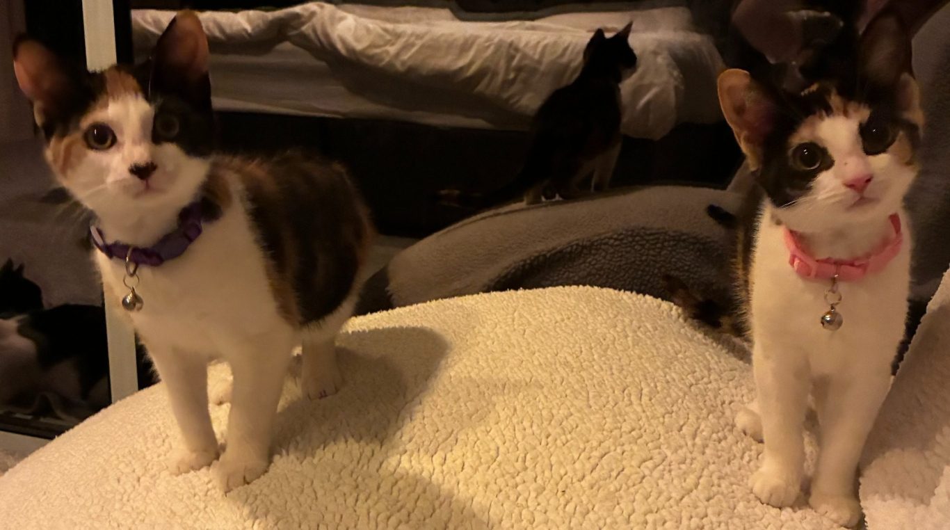 Acer and Fig are currently in foster care in Bedford and would likely do well in a home with a cat-friendly dog or older children.